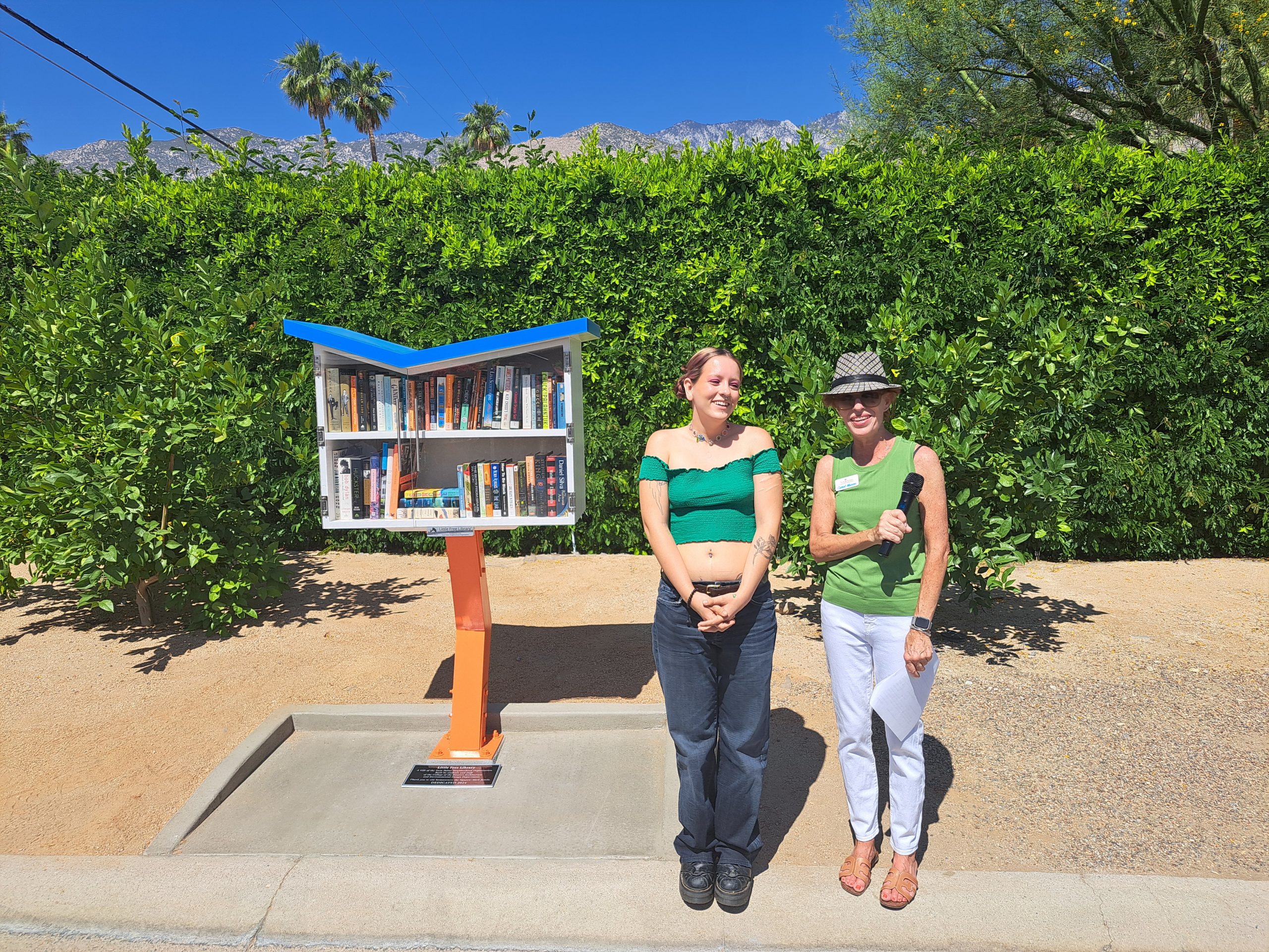 Over 50 Twin Palms residents, city leaders, and representatives from the College of the Desert and Modernism Week, celebrated the unveiling of the new Twin Palms Little Free Library at the May 14, 2024 Dedication. Residents now have a place to drop off a book to share and/or pick up a book to read. This Neighborhood Initiative project was financed with funds raised by TPNO's 2024 Modernism Week Home Tour.