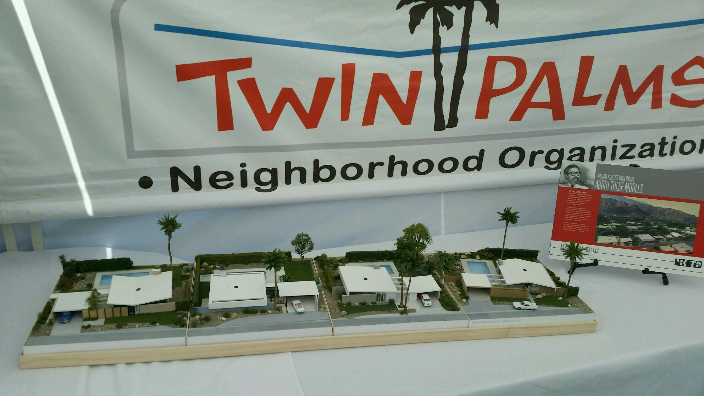 The TPNO booth features our new William Krisel Twin Palms Exhibit. We received rave reviews from everyone who visited our booth. The lucky winner of our raffle received a copy of the book “William Krisel’s Palm Springs, the Language of Modernism”, signed by one of the authors Chris Menrad, and two sets of the breeze coasters we commissioned for the 2018 Twin Palms Modernism Tour.