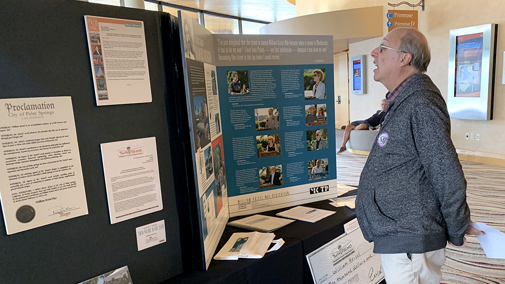 This event registers 300 people each year for presentations, discussions, updates, and camaraderie around preservation of local history, particularly architecture. The convention center lobby allowed for the largest-ever and most complete set-up of our William Krisel’s Twin Palms exhibit. Sponsored by the City of Palm Springs and several preservation groups, this high-profile event in a high-visibility venue attracted attention of local media.