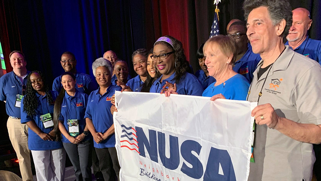 From May 15th through May 18, 2019, Palm Springs hosted the annual Neighborhoods, USA (NUSA) national conference for the first time in NUSA’s 44-year history. NUSA is the national association of neighborhood organizations and the city staffs that serve them. Nearly 700 delegates representing 29 states plus Washington DC convened to share best practices for building community and assuring productive relationships between neighborhoods and city governments. Twin Palms had the most visible presence of any Palms Springs neighborhood with its 10 table William Krisel’s Twin Palms exhibit.