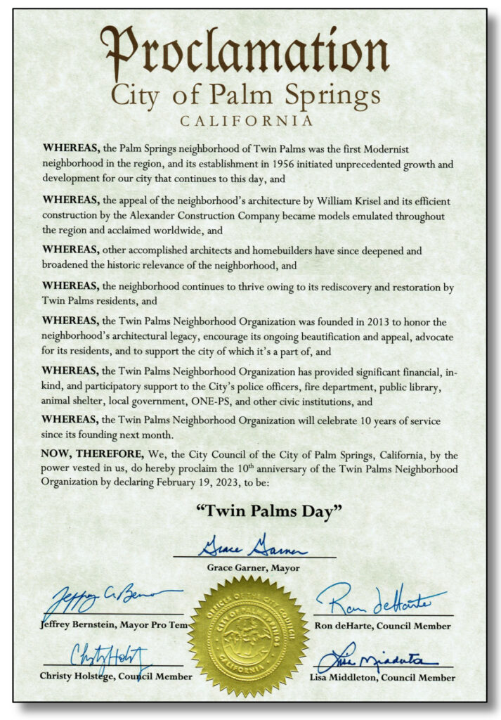 A special guest appearance was made by Claire Krisel Wasserman, the granddaughter of Twin Palms most famous architect William Krisel. She shared her insight of how life was growing up with her grandfather and the legacy he imprinted on the desert. Her dynamic personality and sense of humor was welcomed by all and added so much to the program.