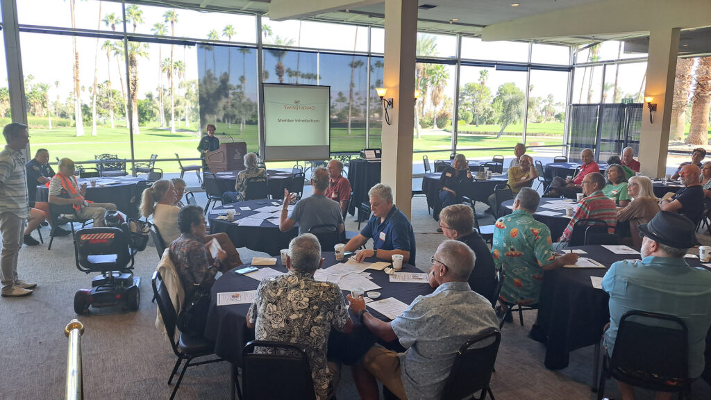 The 10th Annual General Membership meeting of the Twin Palms Neighborhood Organization was held on Saturday, April 6, 2024 at the Ocotillo Lodge Clubhouse. The two featured speakers were Teresa Gallavan, Assistant City Manager, and Eric Chiel, resident neighborhood historian. The agenda included election of Advisory Board members.